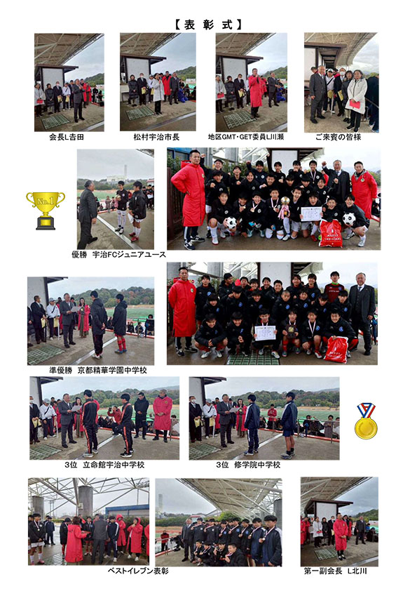 この大会にご協力頂きました宇治サッカー協会、宇治市中学校体育連盟他関係各位に心から厚く御礼申し上げます。尚、成績結果は下記の通りです。